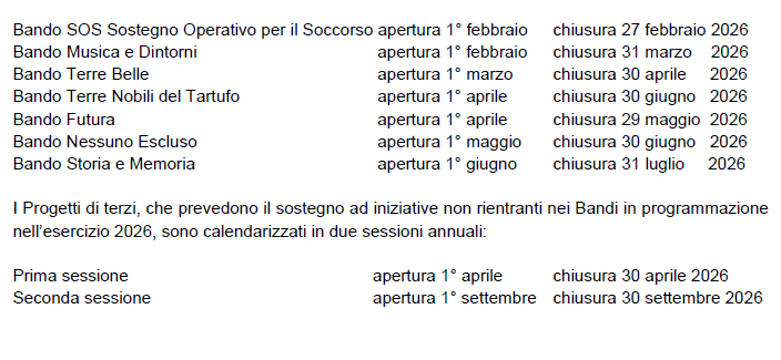 La Fondazione Cassa di Risparmio di Alessandria ha calendarizzato i Bandi e le richieste di contributo ordinario per l’anno 2026